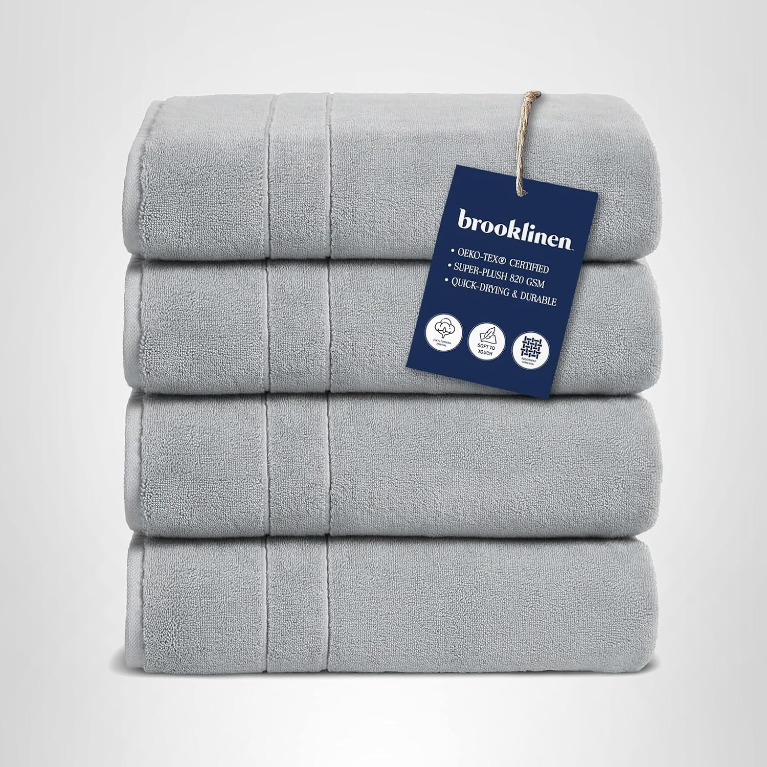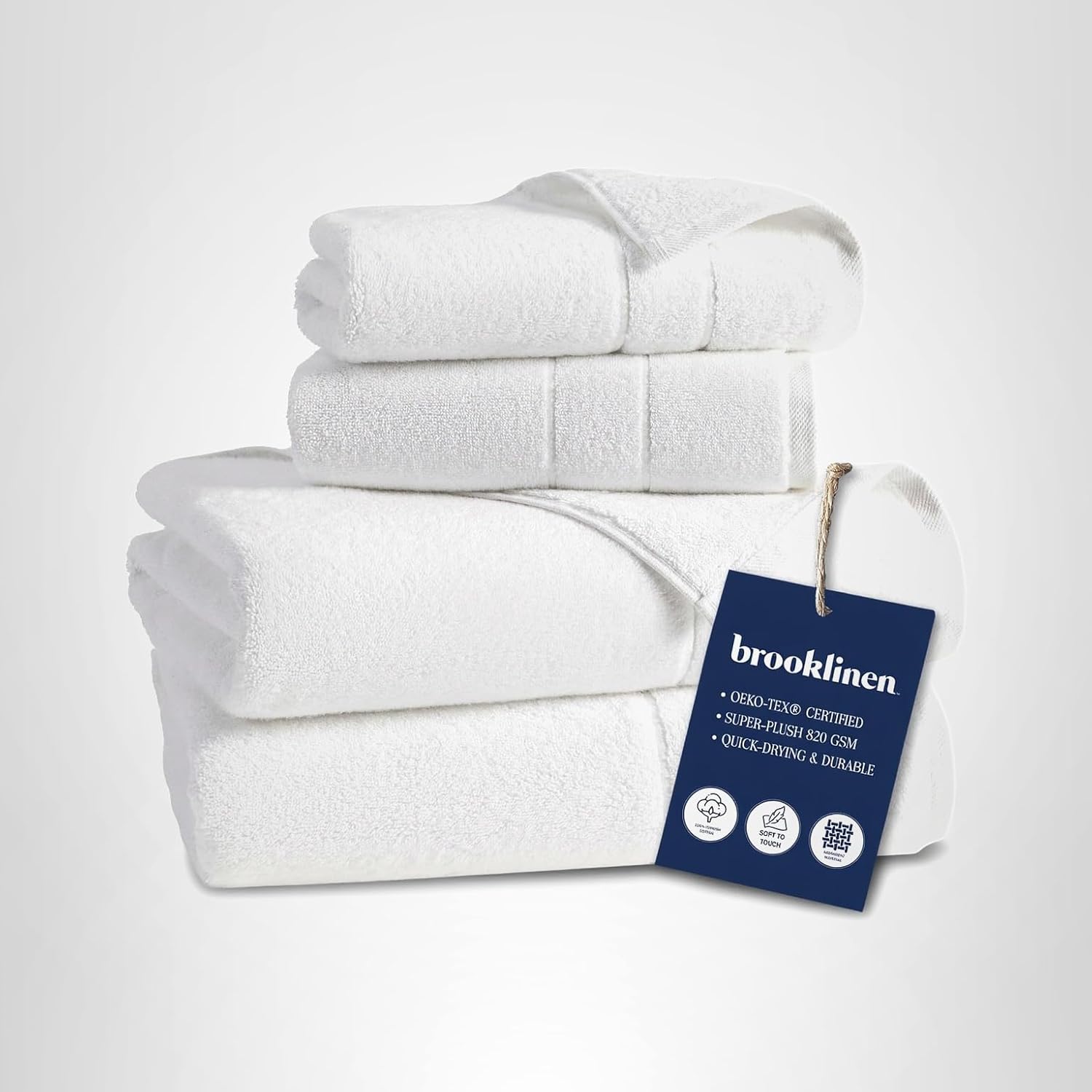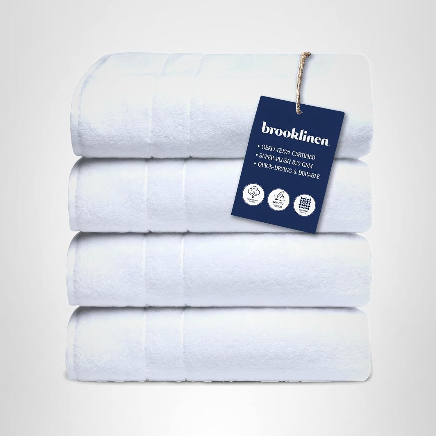 Brooklinen Super-Plush Turkish Cotton Bath Towels – Set of 4 – Cotton, 820 GSM, Highly Absorbent, Machine Washable, Perfect for Home & Bathroom (30″ x 58″, Solid White)