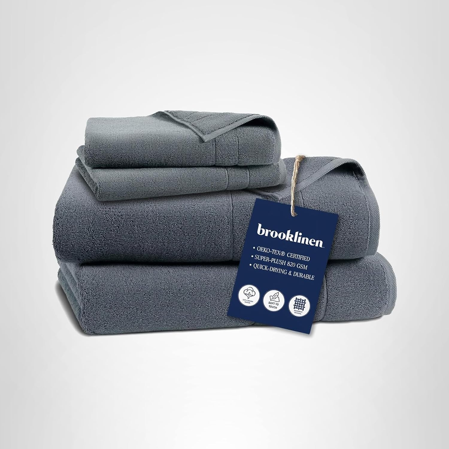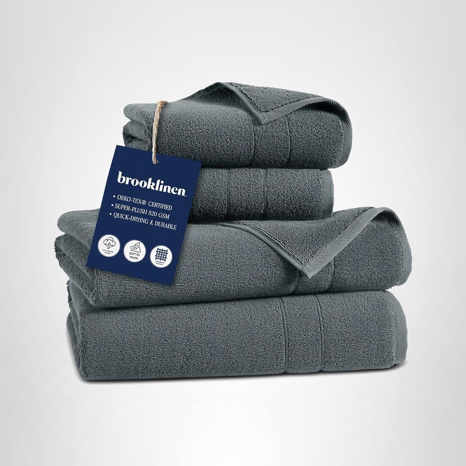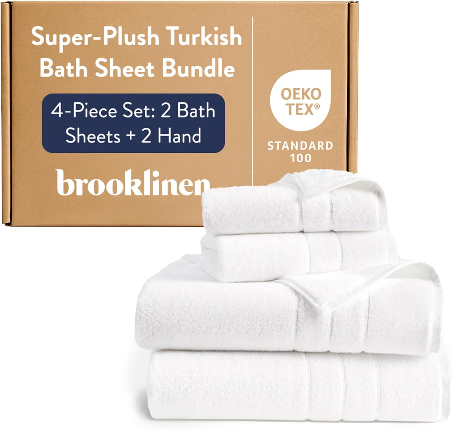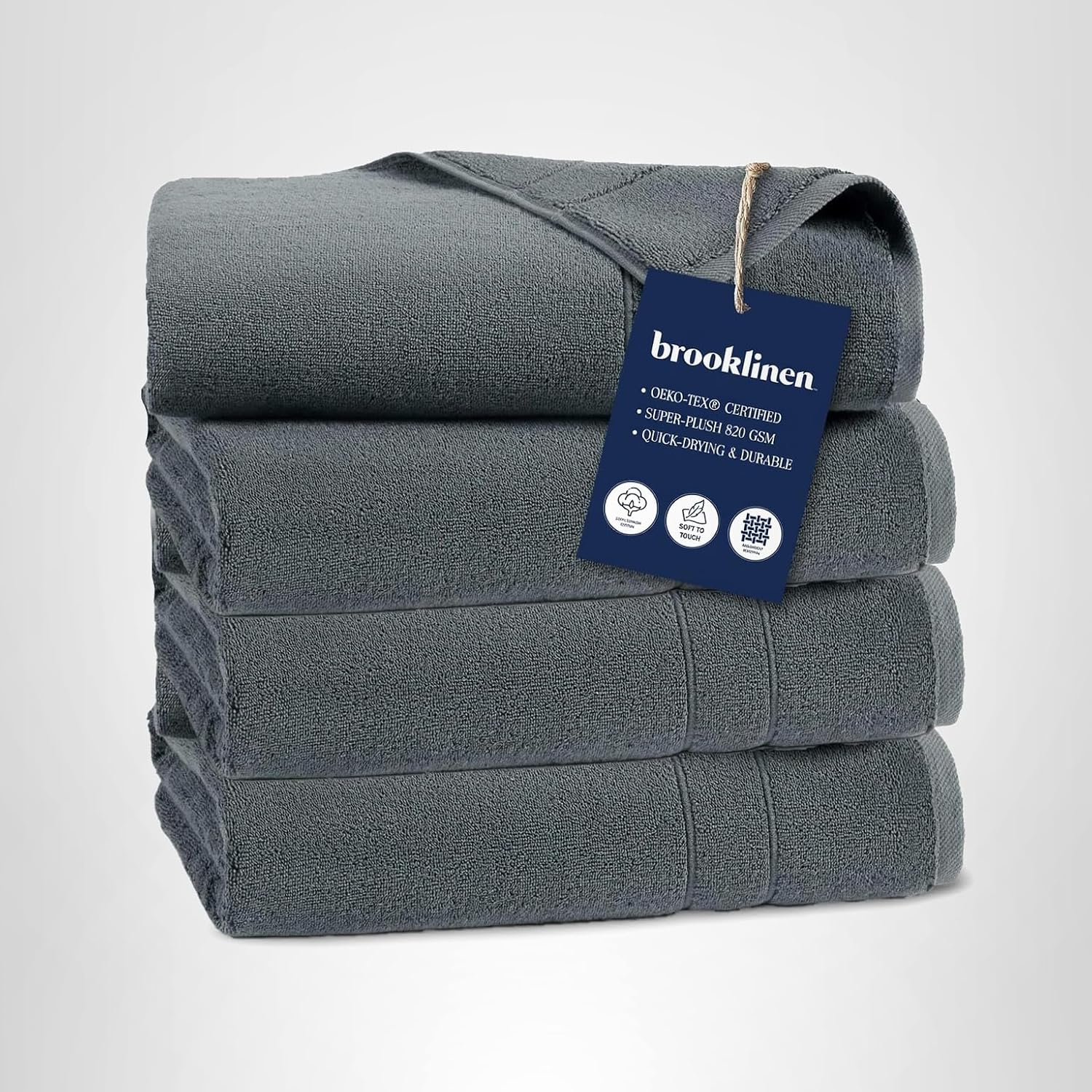Brooklinen Super-Plush Turkish Cotton Bath Towels – Set of 4 – Cotton, 820 GSM, Highly Absorbent, Machine Washable, Perfect for Home & Bathroom (30″ x 58″, Solid White)