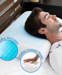 LETOM Memory Foam, Cool Gel, Cooling Pillow, 16 x 24 in, White, Rectangular, 2-in-1 Firm Support, Checked Pattern, for Teens and Adults