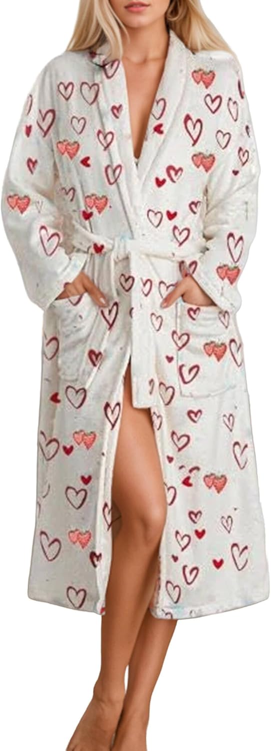 - [Thoughtful & Stylish Design]This elegant cute bathrobes features a shawl collar, deep V-neck, and long sleeves for a flattering fit. The adjustable self-tie belt enhances your silhouette while the two spacious front pockets keep your phone, keys, or skincare essentials within reach.