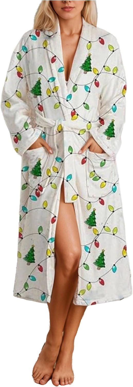 - [Versatile for Every Occasion]Whether you’re stepping out of the shower, enjoying a morning coffee, or unwinding before bed, this lounge robe is your go-to companion. Its lightweight yet warm fabric makes it suitable for summer evenings, beach trips, or hotel stays. Dress it up for a romantic date night or keep it casual for movie marathons—this womens robe effortlessly transitions from self-care sessions to everyday loungewear.